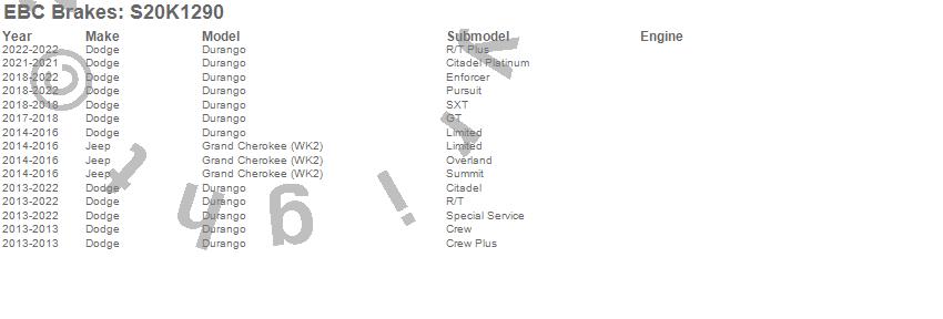 Below is an abreviated list of applications for the S20 Kits Ultimax and Plain Rotors.