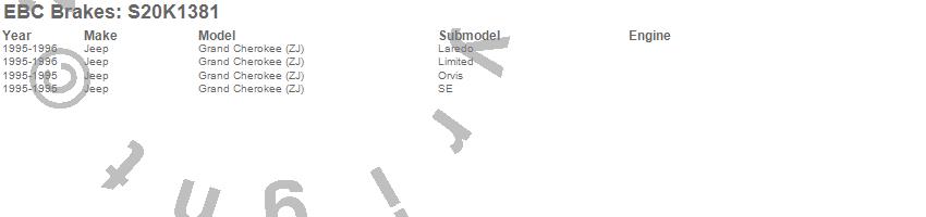 Below is an abreviated list of applications for the S20 Kits Ultimax and Plain Rotors.