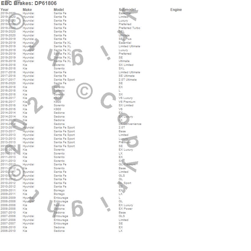Below is an abreviated list of applications for the EBC 6000 Series Greenstuff Truck/SUV Brakes Disc Pads.