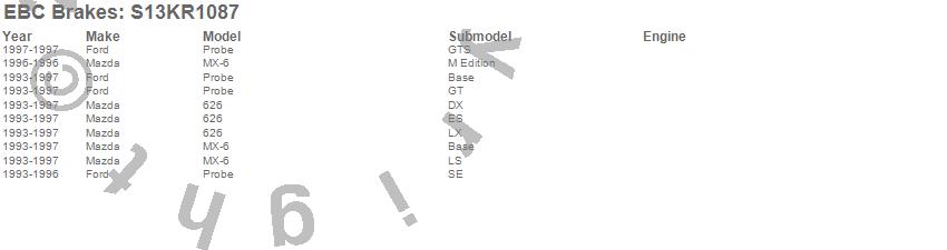 Below is an abreviated list of applications for the S13 Kits Yellowstuff and RK Rotors.