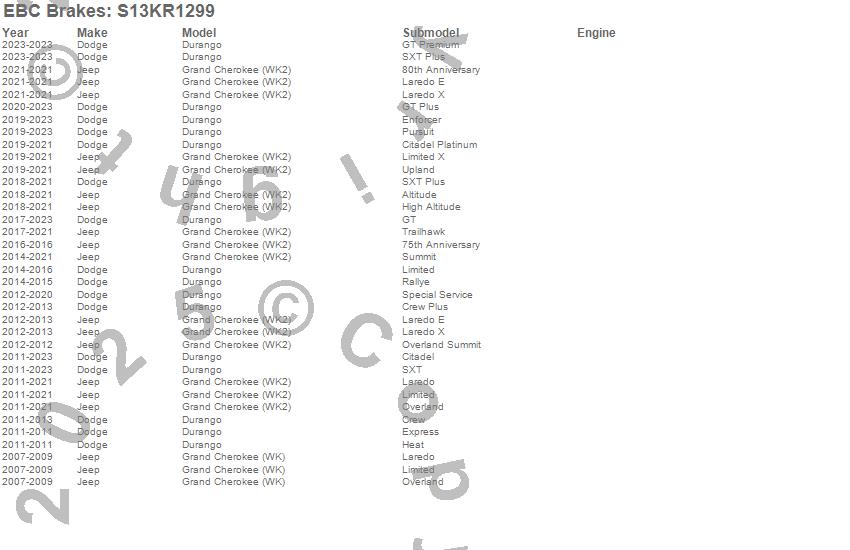 Below is an abreviated list of applications for the S13 Kits Yellowstuff and RK Rotors.
