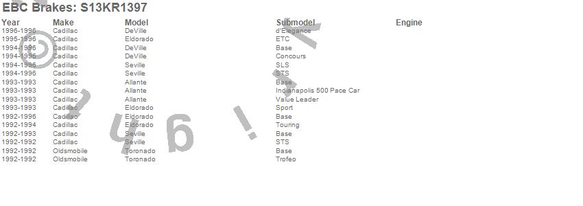 Below is an abreviated list of applications for the S13 Kits Yellowstuff and RK Rotors.