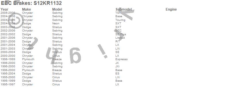 Below is an abreviated list of applications for the S12 Kits Redstuff and RK Rotors.