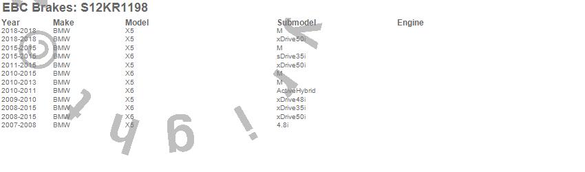 Below is an abreviated list of applications for the S12 Kits Redstuff and RK Rotors.