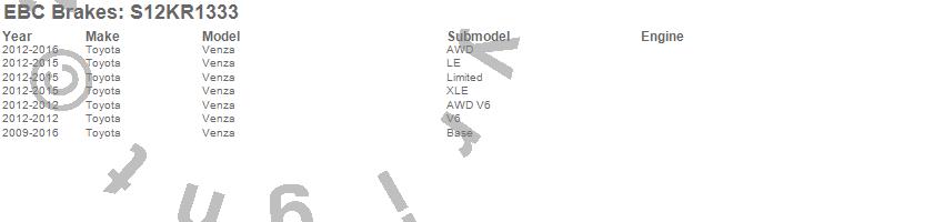 Below is an abreviated list of applications for the S12 Kits Redstuff and RK Rotors.