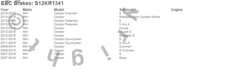 Below is an abreviated list of applications for the S12 Kits Redstuff and RK Rotors.