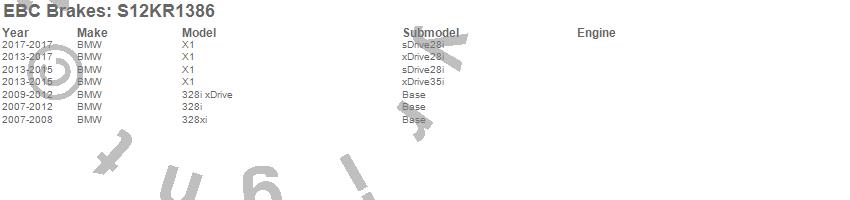 Below is an abreviated list of applications for the S12 Kits Redstuff and RK Rotors.