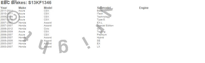 Below is an abreviated list of applications for the S13 Kits Yellowstuff and RK Rotors.