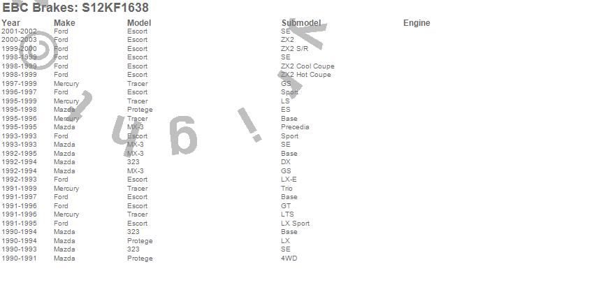 323, Escort, MX-3, Protege, Tracer, Ford, Mazda, Mercury, 2003, 2002, 2001, 2000, 1999, 1998, 1997, 1996, 1995, 1994, 1993, 1992 more…