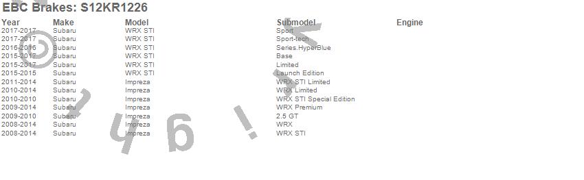 Below is an abreviated list of applications for the S12 Kits Redstuff and RK Rotors.