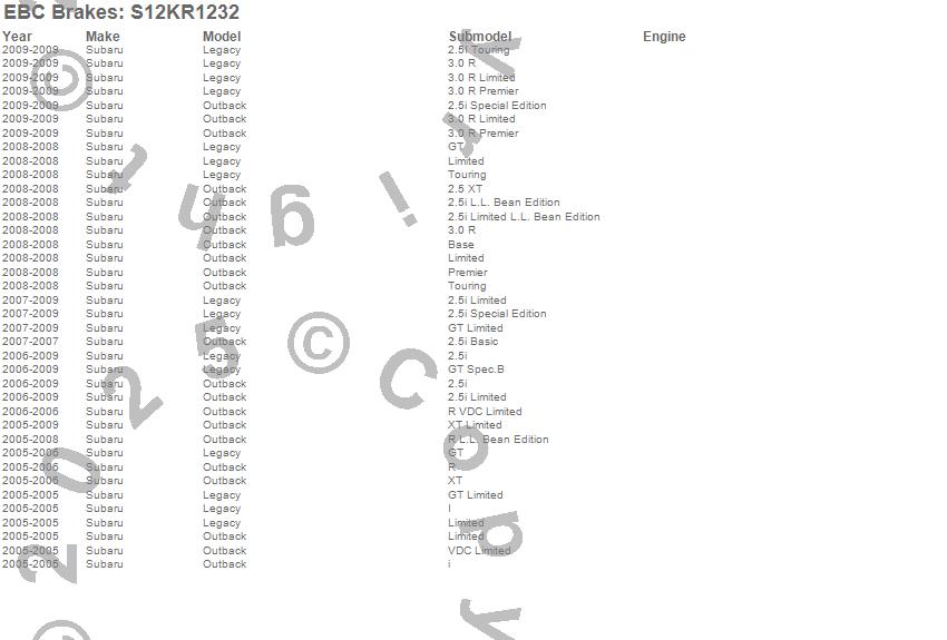 Below is an abreviated list of applications for the S12 Kits Redstuff and RK Rotors.