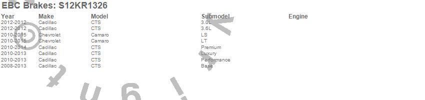 Below is an abreviated list of applications for the S12 Kits Redstuff and RK Rotors.