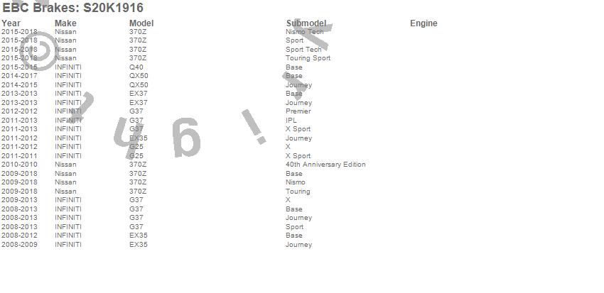 Below is an abreviated list of applications for the S20 Kits Ultimax and Plain Rotors.