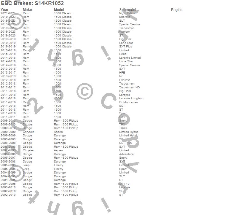 Below is an abreviated list of applications for the S14 Kits Greenstuff and RK Rotors SUV.