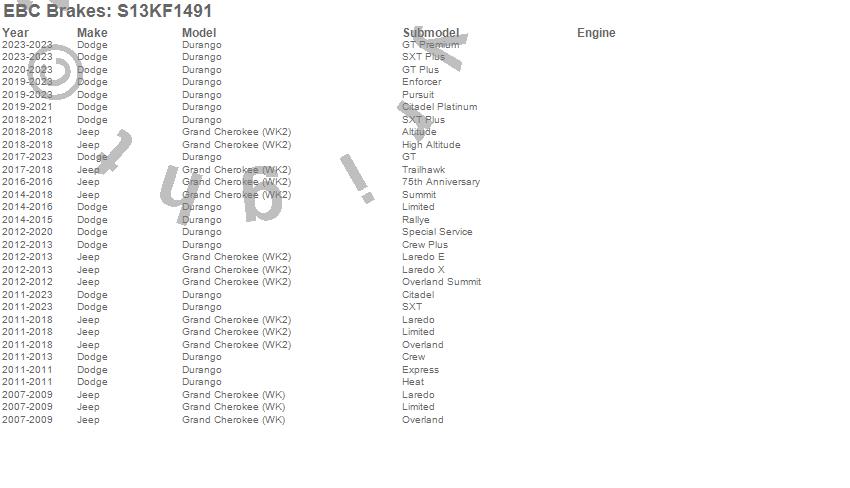 Below is an abreviated list of applications for the S13 Kits Yellowstuff and RK Rotors.