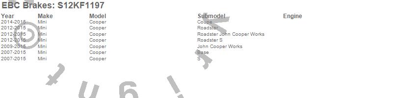 Below is an abreviated list of applications for the S12 Kits Redstuff and RK Rotors.