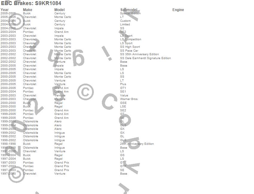 Below is an abreviated list of applications for the S9 Kits Yellowstuff and USR Rotors.