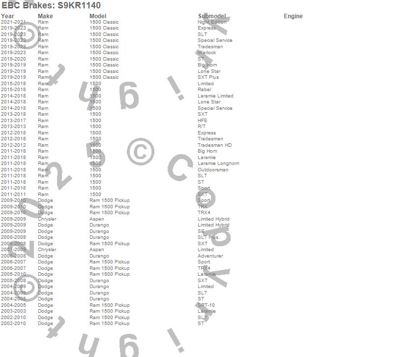 Below is an abreviated list of applications for the S9 Kits Yellowstuff and USR Rotors.
