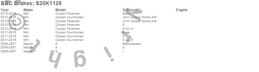 Below is an abreviated list of applications for the S20 Kits Ultimax and Plain Rotors.