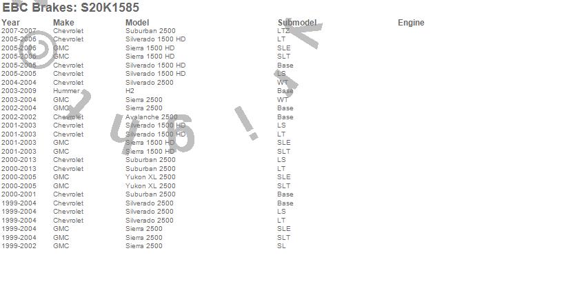Below is an abreviated list of applications for the S20 Kits Ultimax and Plain Rotors.