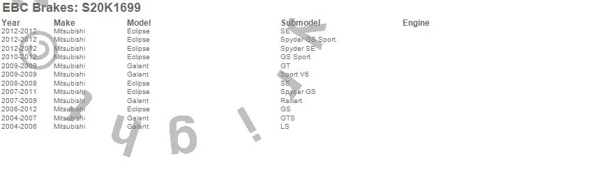 Below is an abreviated list of applications for the S20 Kits Ultimax and Plain Rotors.