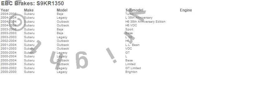 Below is an abreviated list of applications for the S9 Kits Yellowstuff and USR Rotors.