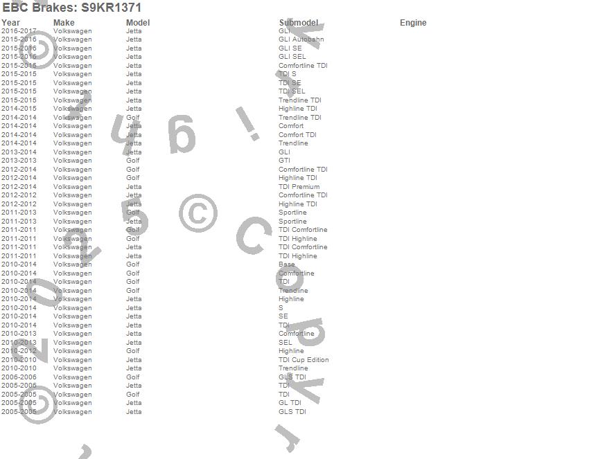 Below is an abreviated list of applications for the S9 Kits Yellowstuff and USR Rotors.
