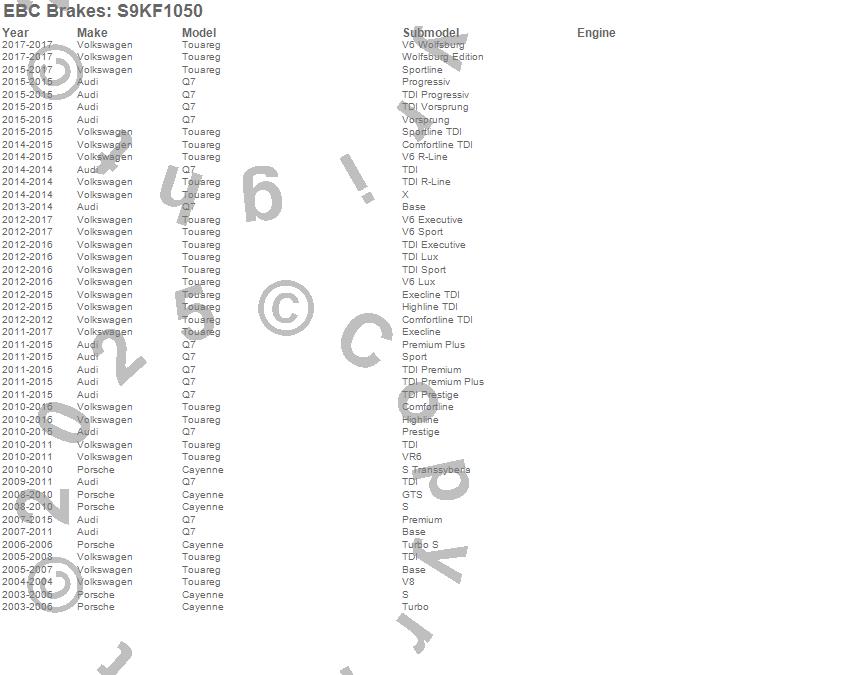 Below is an abreviated list of applications for the S9 Kits Yellowstuff and USR Rotors.