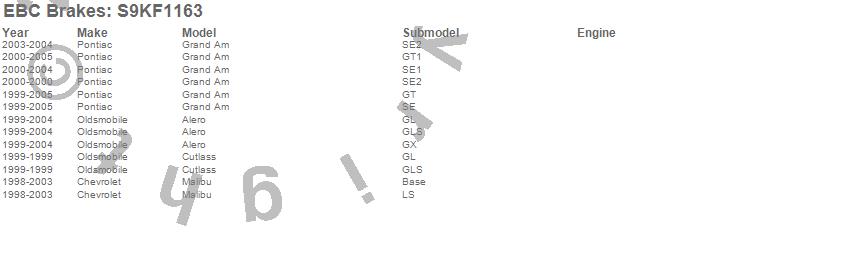 Below is an abreviated list of applications for the S9 Kits Yellowstuff and USR Rotors.