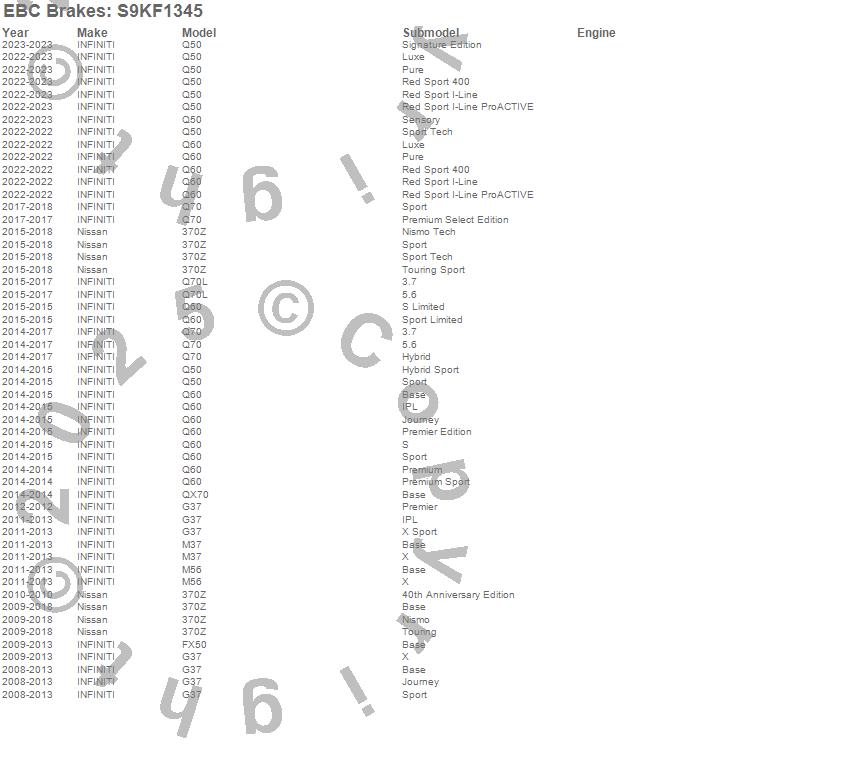 Below is an abreviated list of applications for the S9 Kits Yellowstuff and USR Rotors.