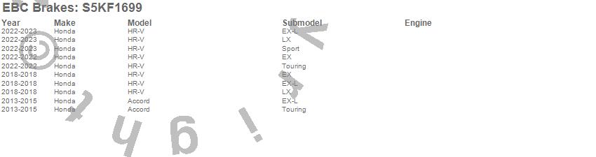 Below is an abreviated list of applications for the S5 Kits yellowstuff And GD Rotors.