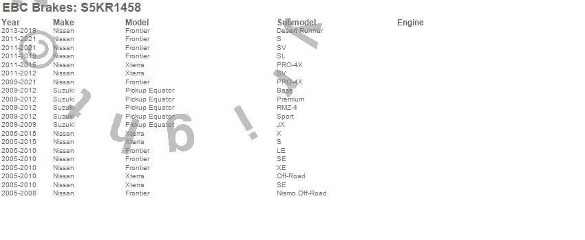 Below is an abreviated list of applications for the S5 Kits yellowstuff And GD Rotors.