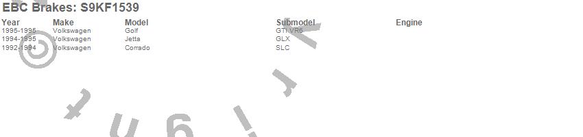 Below is an abreviated list of applications for the S9 Kits Yellowstuff and USR Rotors.
