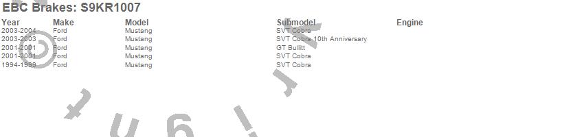Below is an abreviated list of applications for the S9 Kits Yellowstuff and USR Rotors.