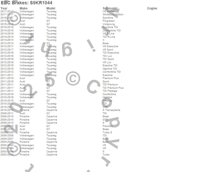 Below is an abreviated list of applications for the S9 Kits Yellowstuff and USR Rotors.