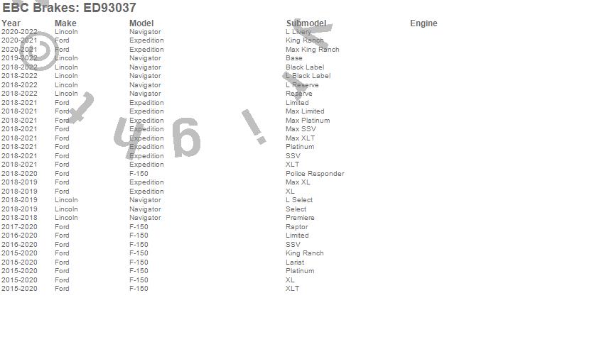 Below is an abreviated list of applications for the EBC Truck/Jeep And SUV Extra Duty Brake Pads.