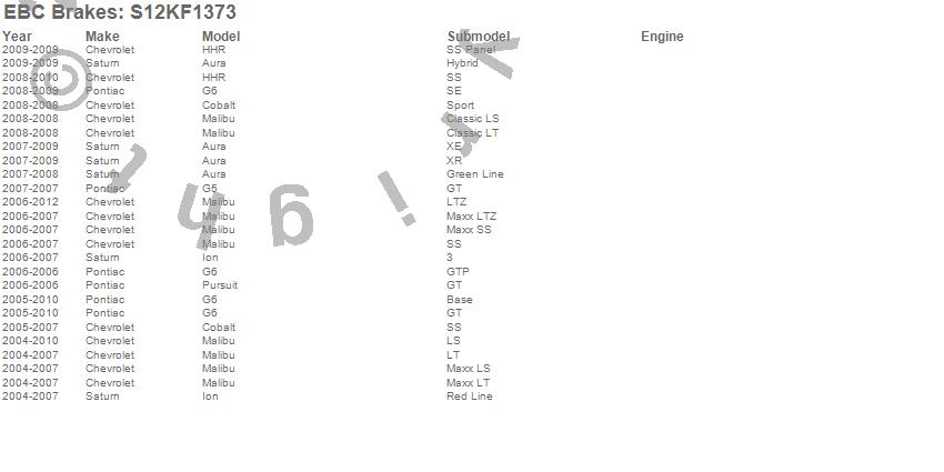 Below is an abreviated list of applications for the S12 Kits Redstuff and RK Rotors.
