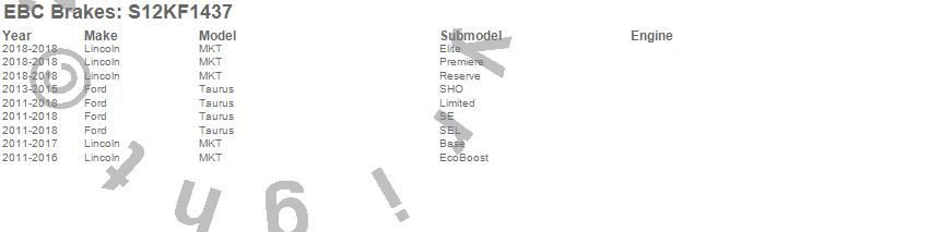 Below is an abreviated list of applications for the S12 Kits Redstuff and RK Rotors.