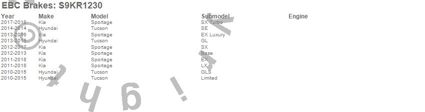 Below is an abreviated list of applications for the S9 Kits Yellowstuff and USR Rotors.