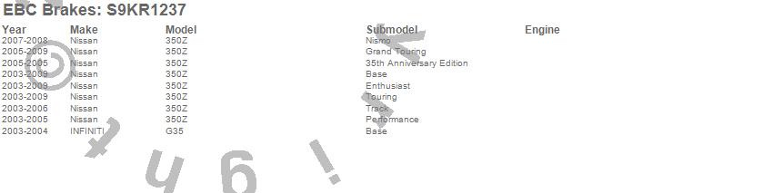 Below is an abreviated list of applications for the S9 Kits Yellowstuff and USR Rotors.