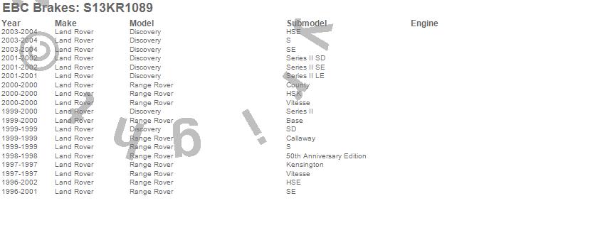 Below is an abreviated list of applications for the S13 Kits Yellowstuff and RK Rotors.