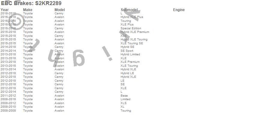 Below is an abreviated list of applications for the S2 Kits Greentuff 2000 and USR Rotors.