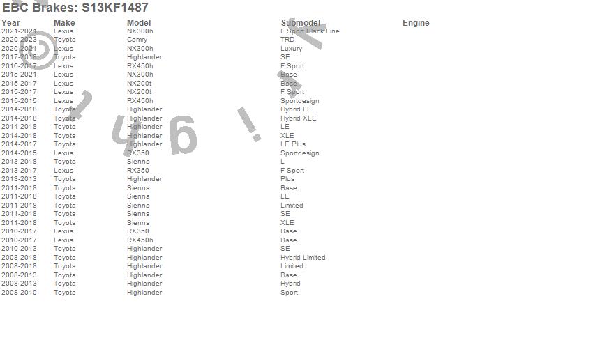 Below is an abreviated list of applications for the S13 Kits Yellowstuff and RK Rotors.