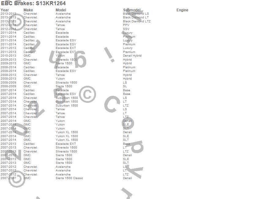 Below is an abreviated list of applications for the S13 Kits Yellowstuff and RK Rotors.