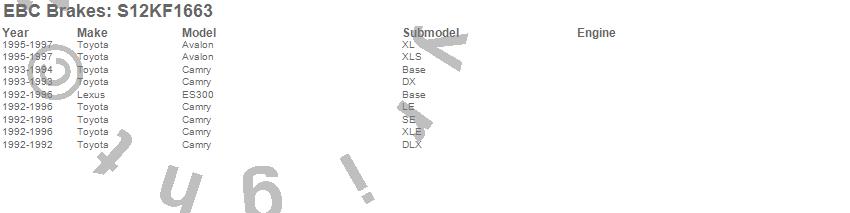 Below is an abreviated list of applications for the S12 Kits Redstuff and RK Rotors.