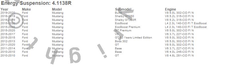 Below is an abreviated list of applications for the Transmission Mount Set.