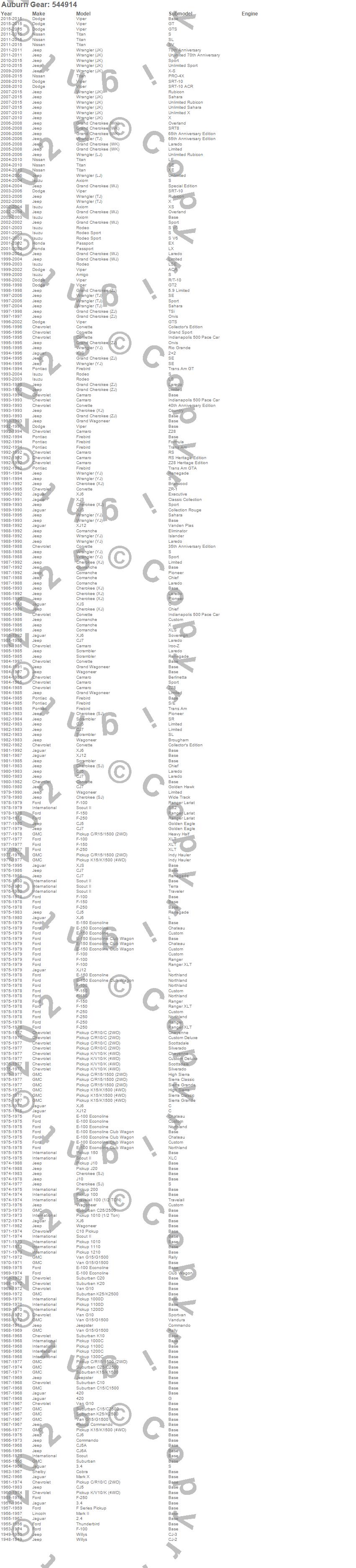 Below is an abreviated list of applications for the Auburn Gear MAX Lock Differential.
