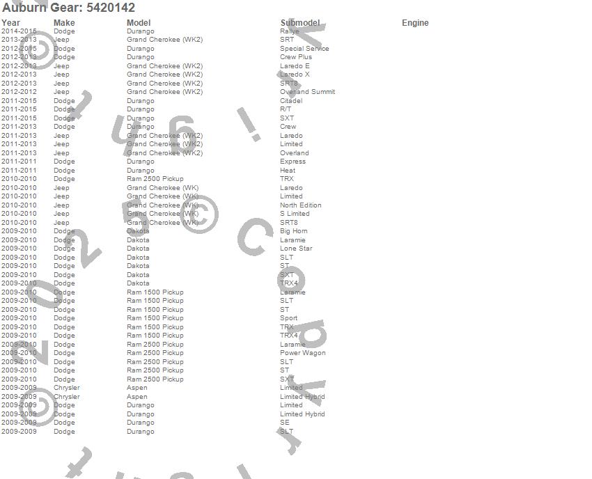Below is an abreviated list of applications for the Auburn Gear HP Series Differential.