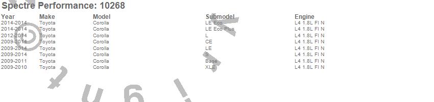 Below is an abreviated list of applications for the Air Intake Kit.