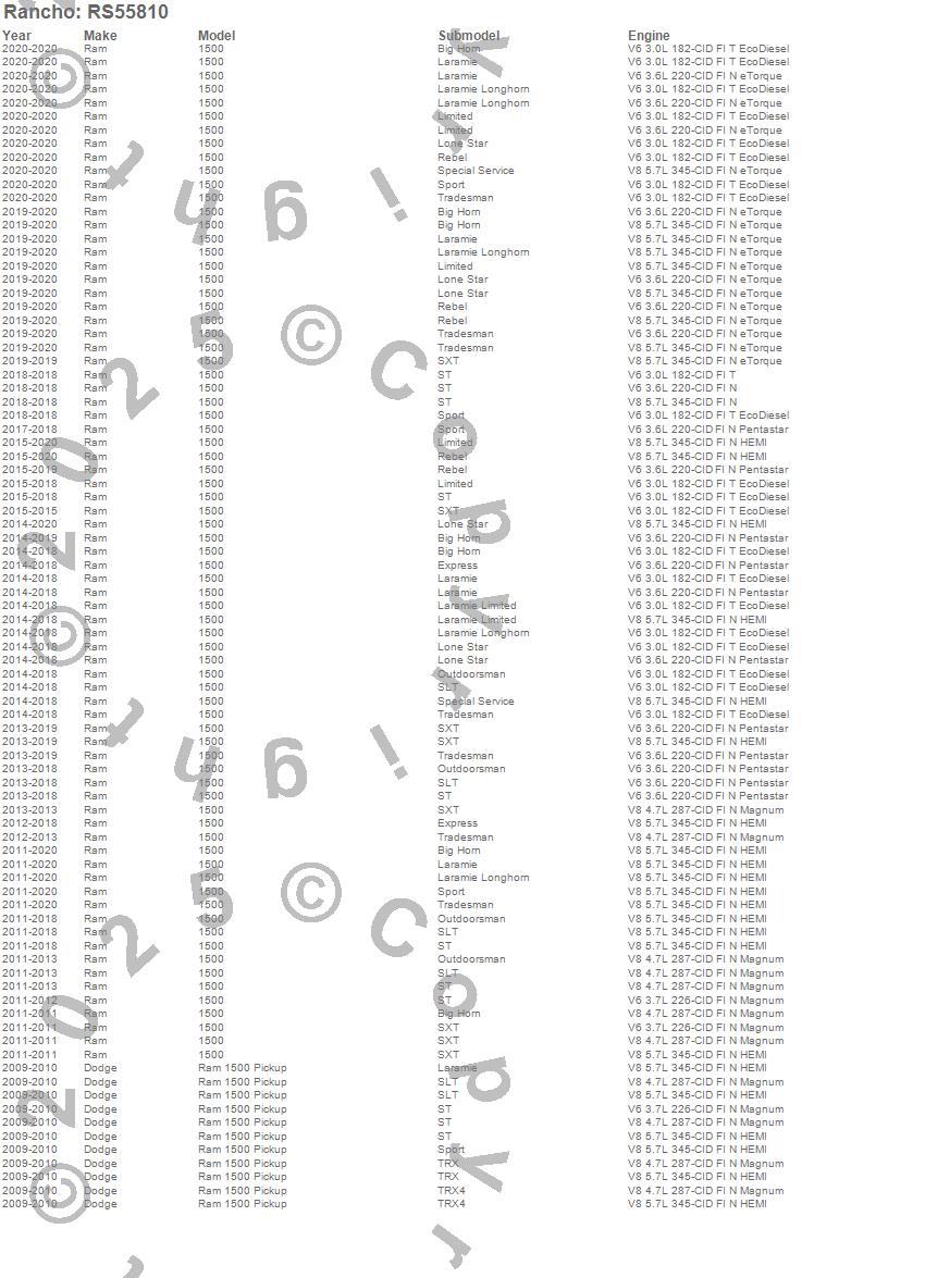 Below is an abreviated list of applications for the RS5000X Series Suspension Strut Assembly.